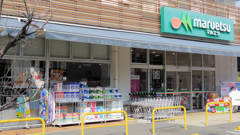 高層マンションの1階にあるマルエツです。入口からは大きくなさそうに見えますが結構奥行きがあります。24時間営業している店舗になります。