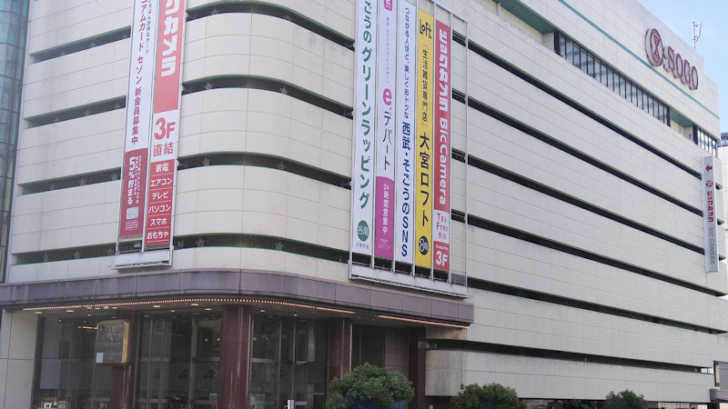 大宮駅西口からすぐのところにあるそごう大宮店。地下1階に生鮮食料品店が固まって営業しています。駐車場は地下2階、3階にあり、入口はヨドバシカメラとの間にある道路から入ることができます。
